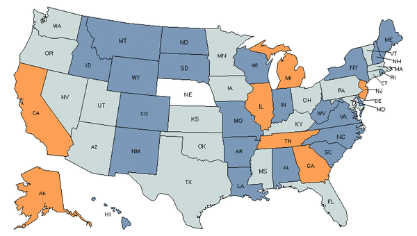 - En los estados anaranjados la fuerza laboral para esta carrera está disponible a un nivel mayor que el promedio.