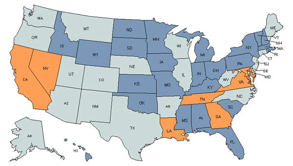 - En los estados anaranjados la fuerza laboral para esta carrera está disponible a un nivel mayor que el promedio.