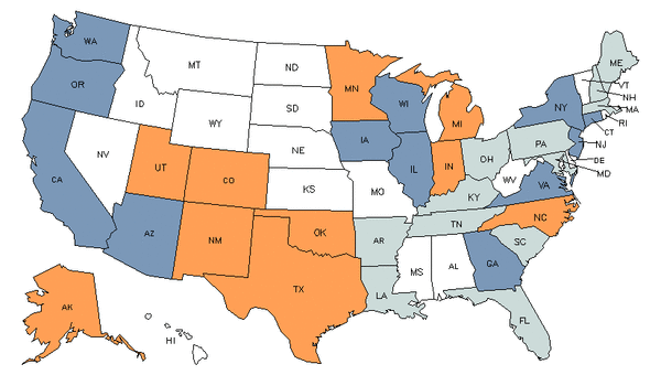 - En los estados anaranjados la fuerza laboral para esta carrera está disponible a un nivel mayor que el promedio.