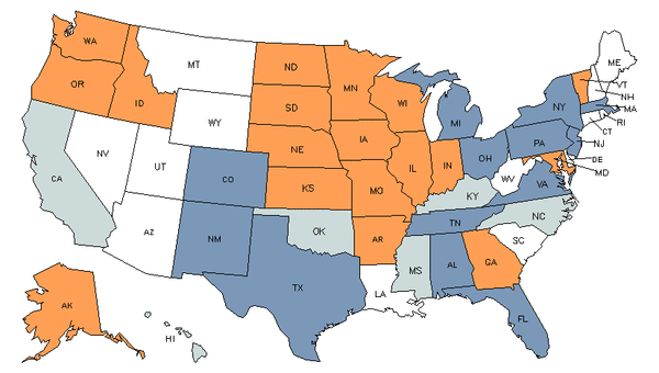 • En los estados anaranjados la fuerza laboral para esta carrera está disponible a un nivel mayor que el promedio.