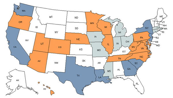 - En los estados anaranjados la fuerza laboral para esta carrera está disponible a un nivel mayor que el promedio.