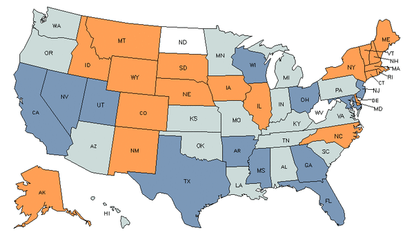 - En los estados anaranjados la fuerza laboral para esta carrera está disponible a un nivel mayor que el promedio.