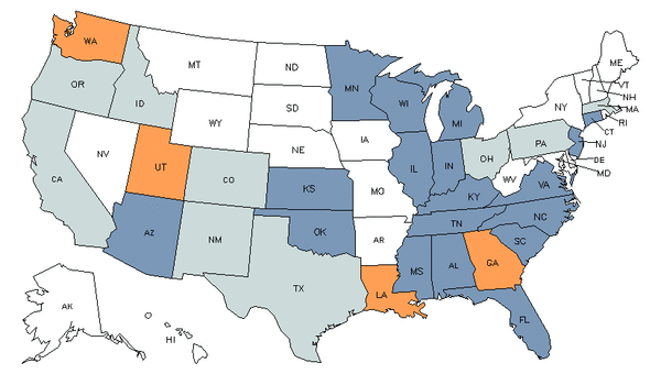 - En los estados anaranjados la fuerza laboral para esta carrera está disponible a un nivel mayor que el promedio.