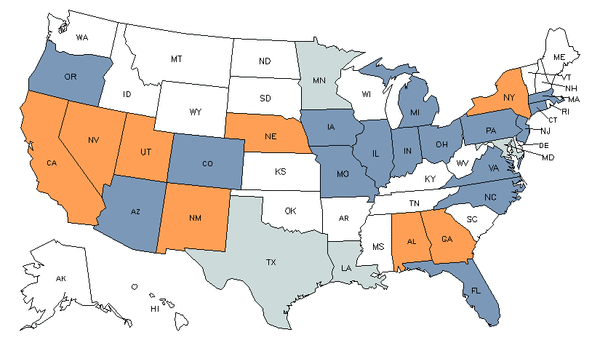 • En los estados anaranjados la fuerza laboral para esta carrera está disponible a un nivel mayor que el promedio.