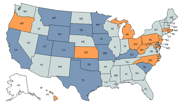 - En los estados anaranjados la fuerza laboral para esta carrera está disponible a un nivel mayor que el promedio.