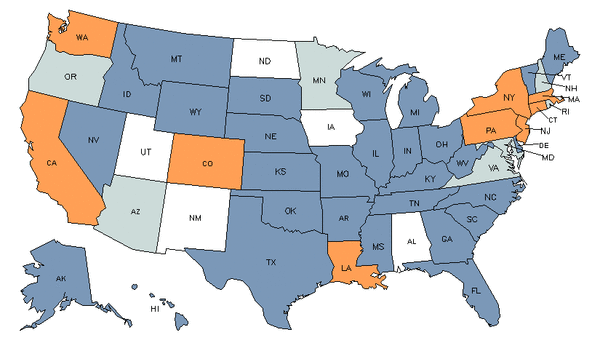 • En los estados anaranjados la fuerza laboral para esta carrera está disponible a un nivel mayor que el promedio.