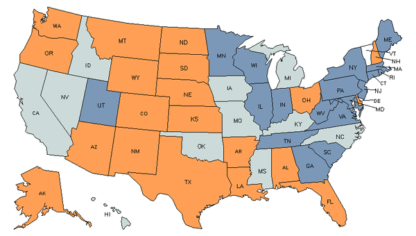 • En los estados anaranjados la fuerza laboral para esta carrera está disponible a un nivel mayor que el promedio.